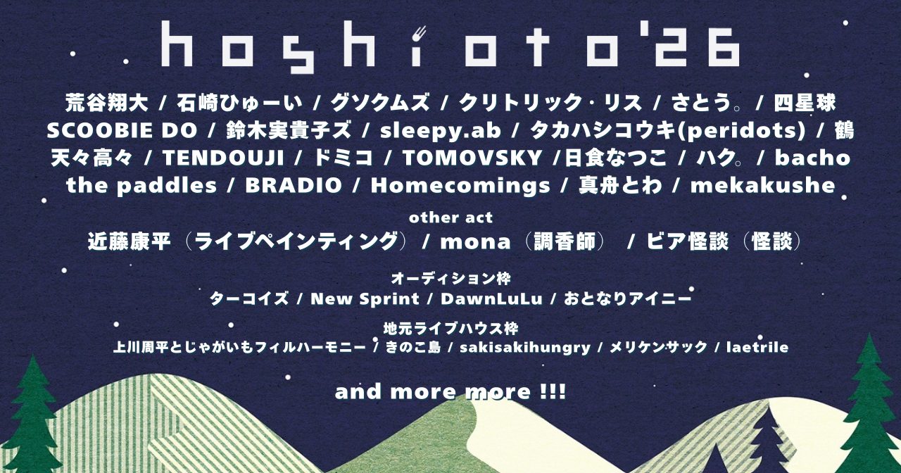 hoshiotoとは地元密着型、完全インディペンデントのローカル野外フェスティバルです。